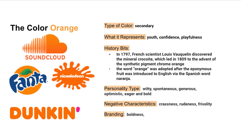 1. the dunkin' logo uses orange, magenta, white and brown with a very bright color scheme